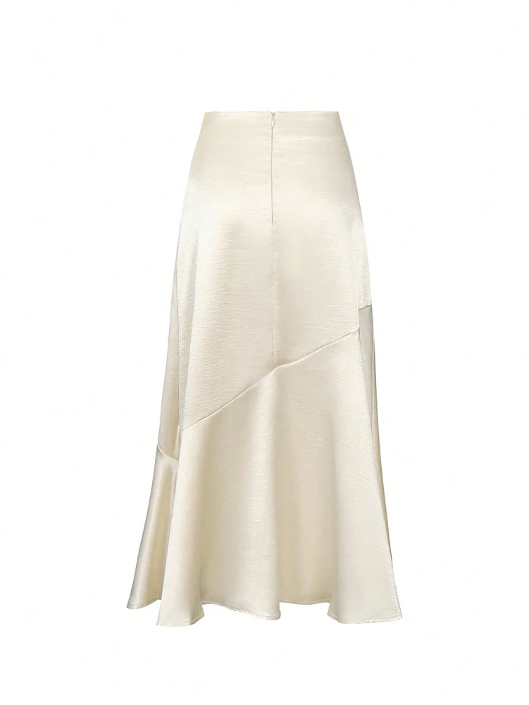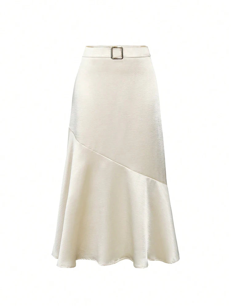 2025 New Women's Premium Design Elegant Satin A-line Half Skirt Pure Colour Belt Halter Skirt Dinner Party Dating
