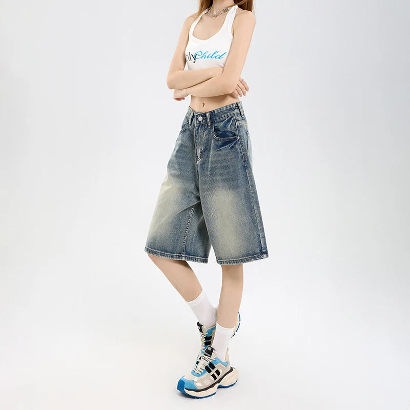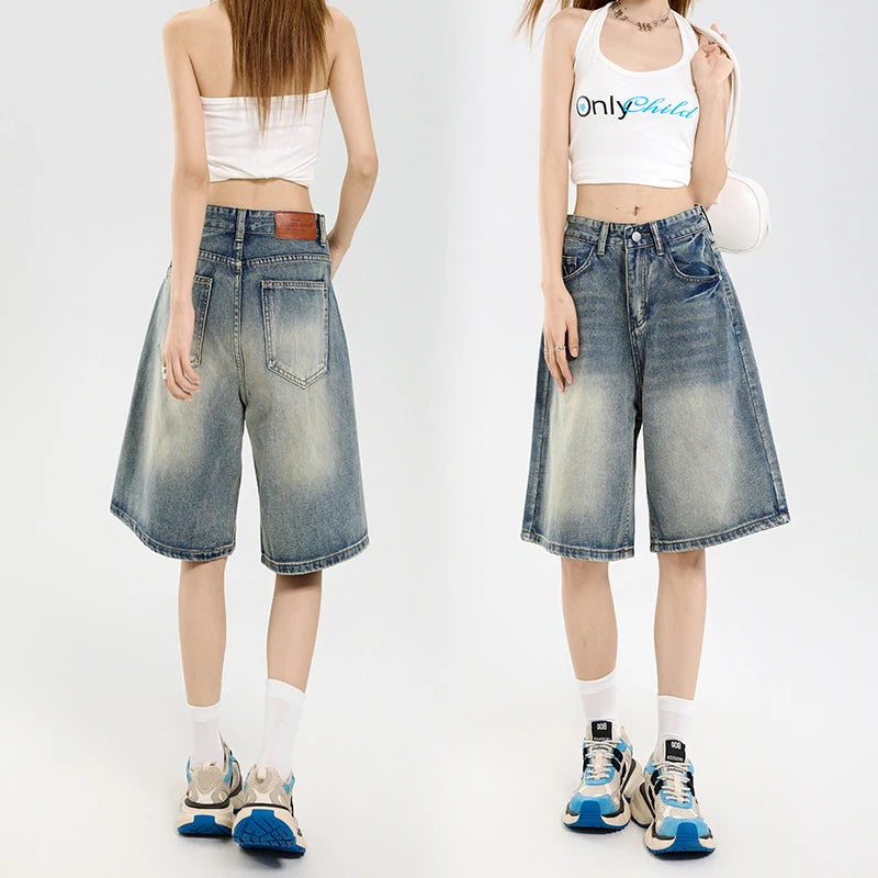 2026 Korean Street Casual Y2K Loose Wide-leg Denim Shorts Five-point Baggy Jeans Women's All-match Straight Summer Hot Shorts
