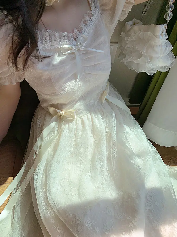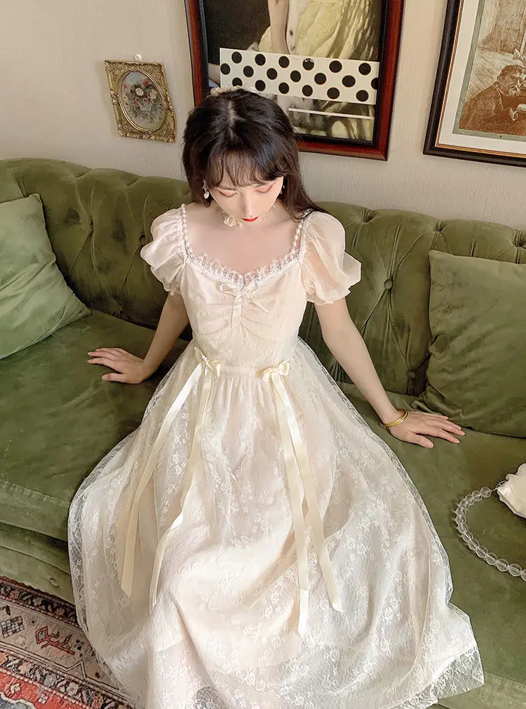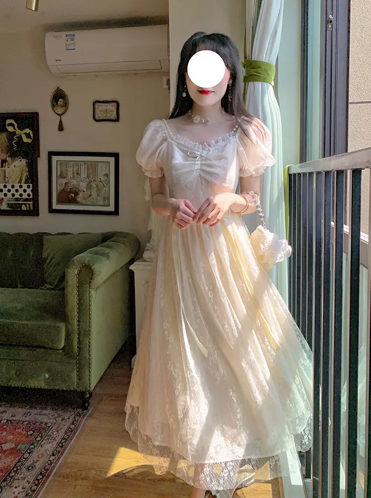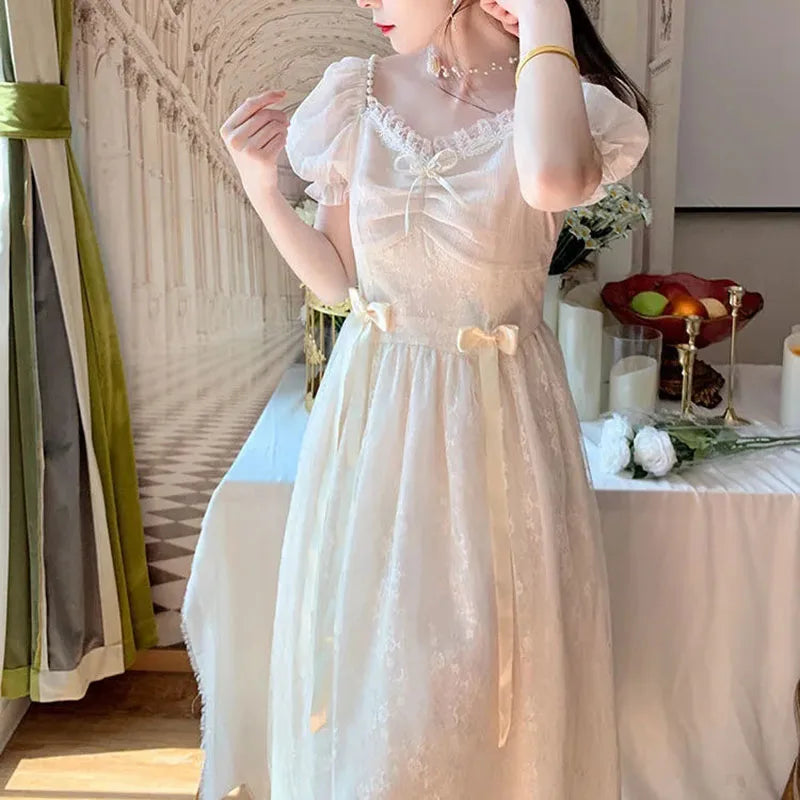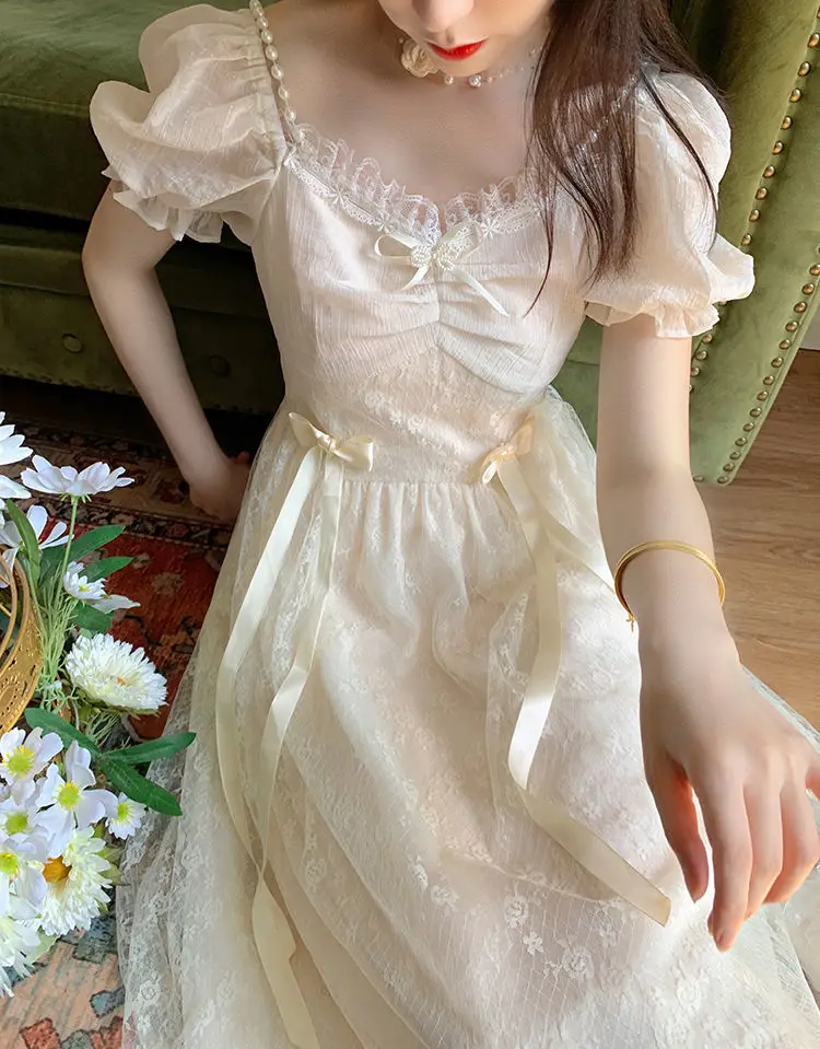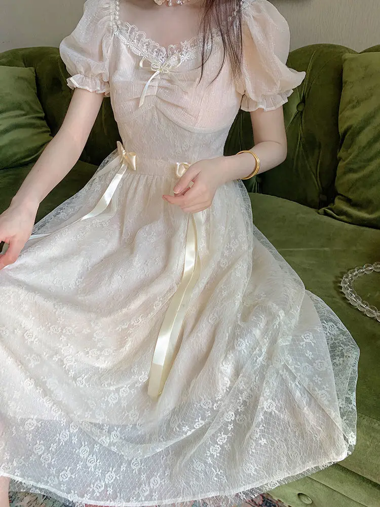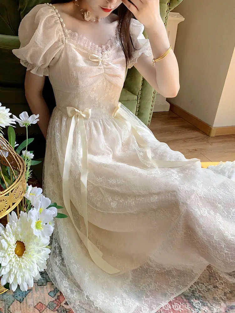 Elegant Princess Dress Women Vintage Lace-up Party Long Fairy Dresses for Women 2023 Summer Victorian Wedding Midi Dress Korean