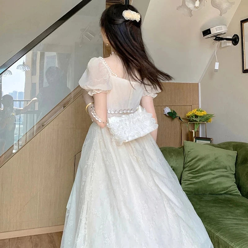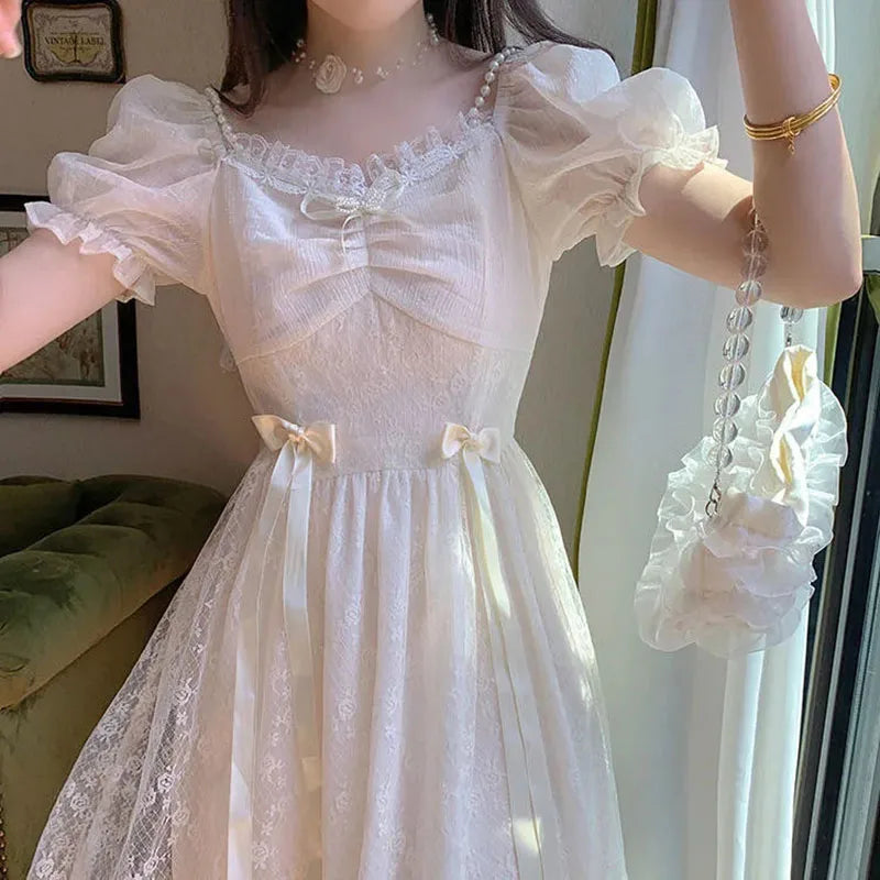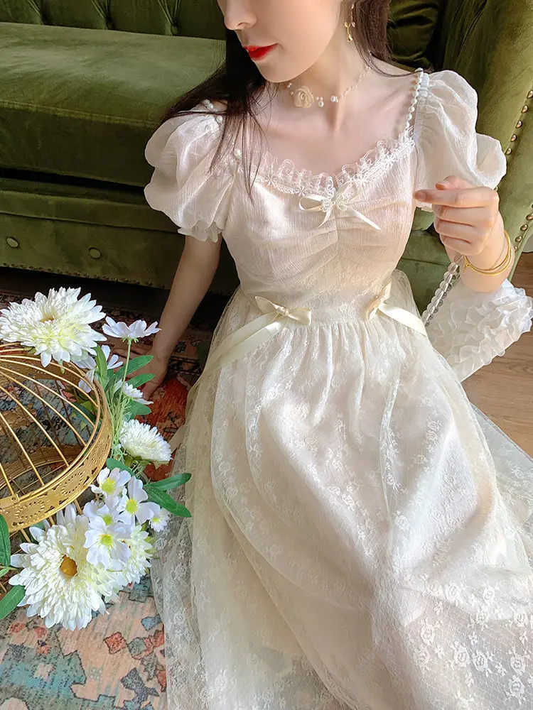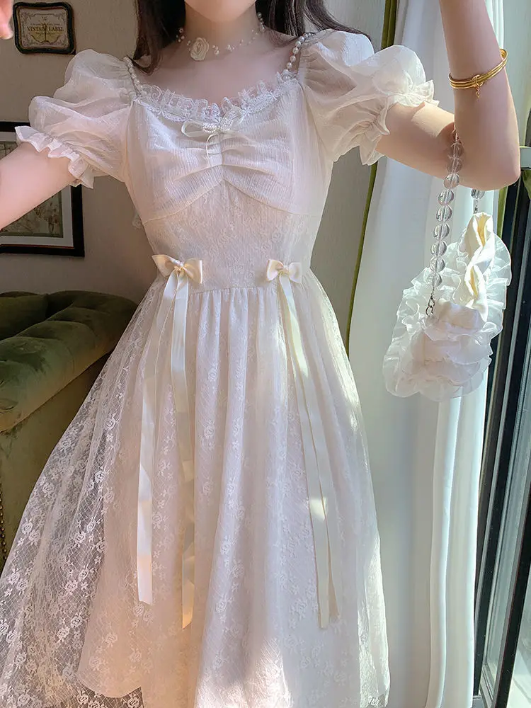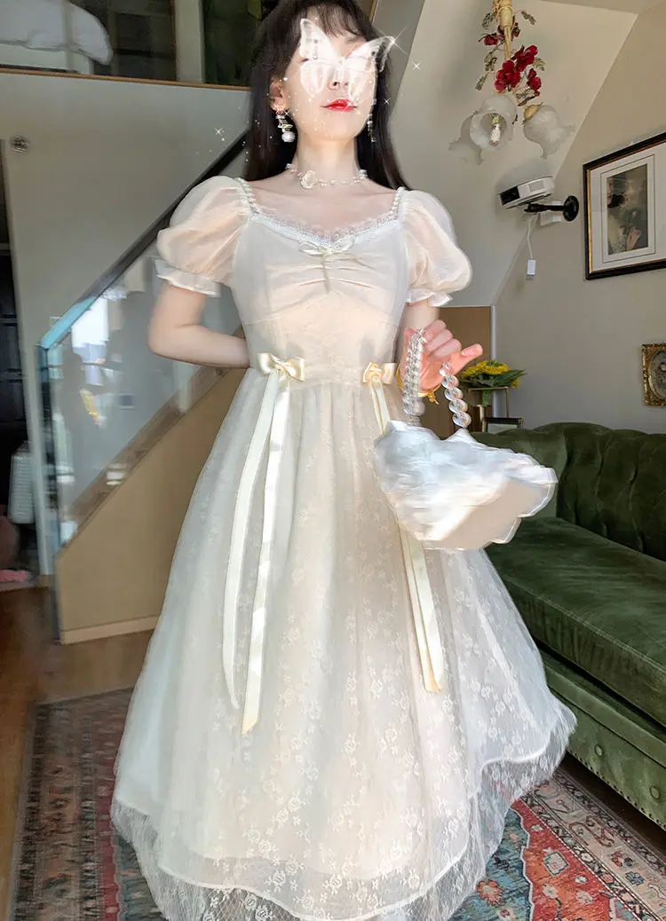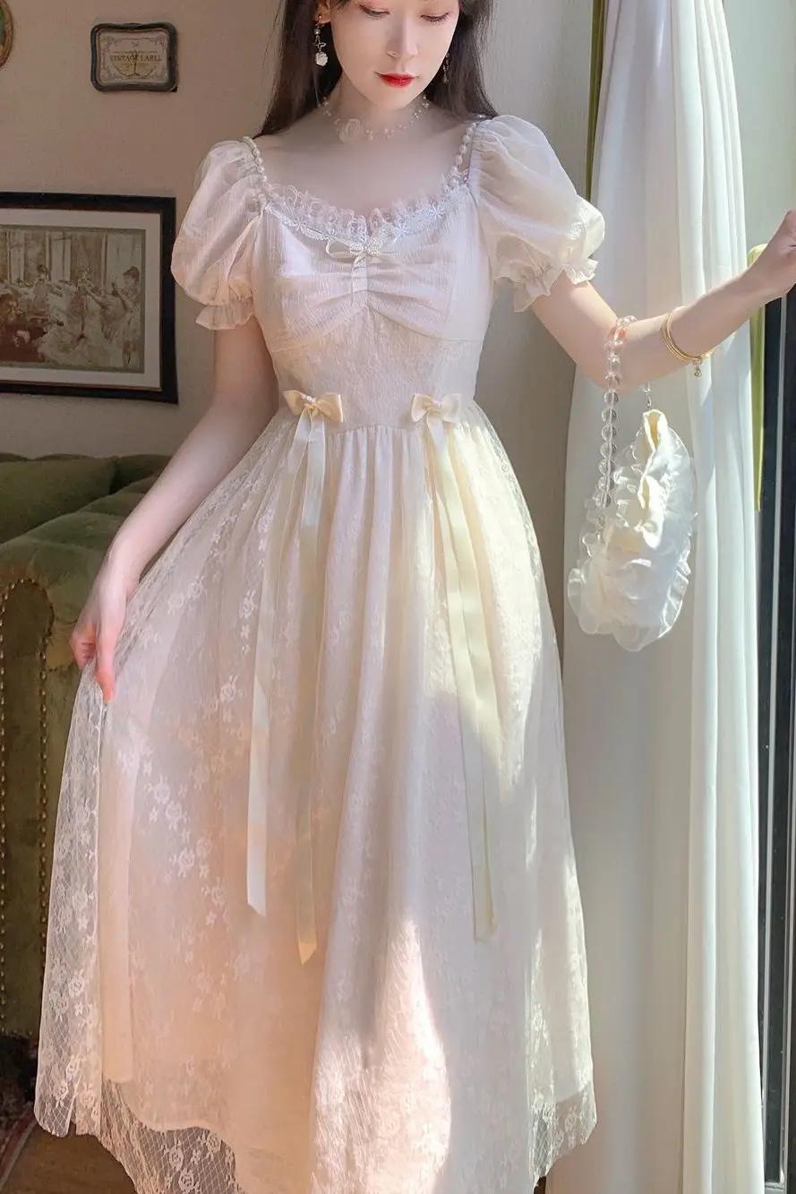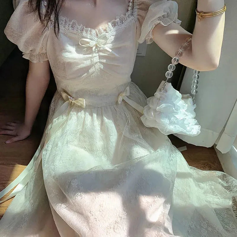 Elegant Princess Dress Women Vintage Lace-up Party Long Fairy Dresses for Women 2023 Summer Victorian Wedding Midi Dress Korean