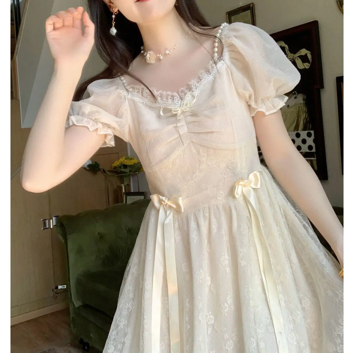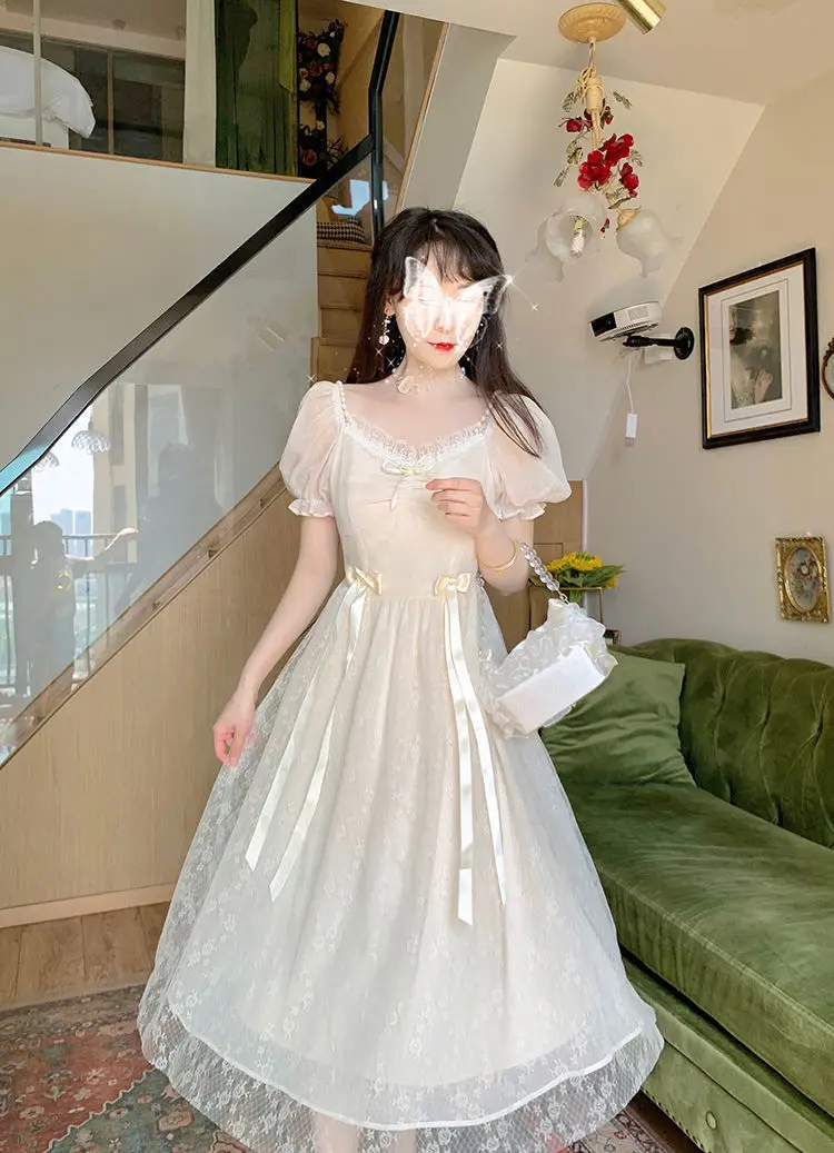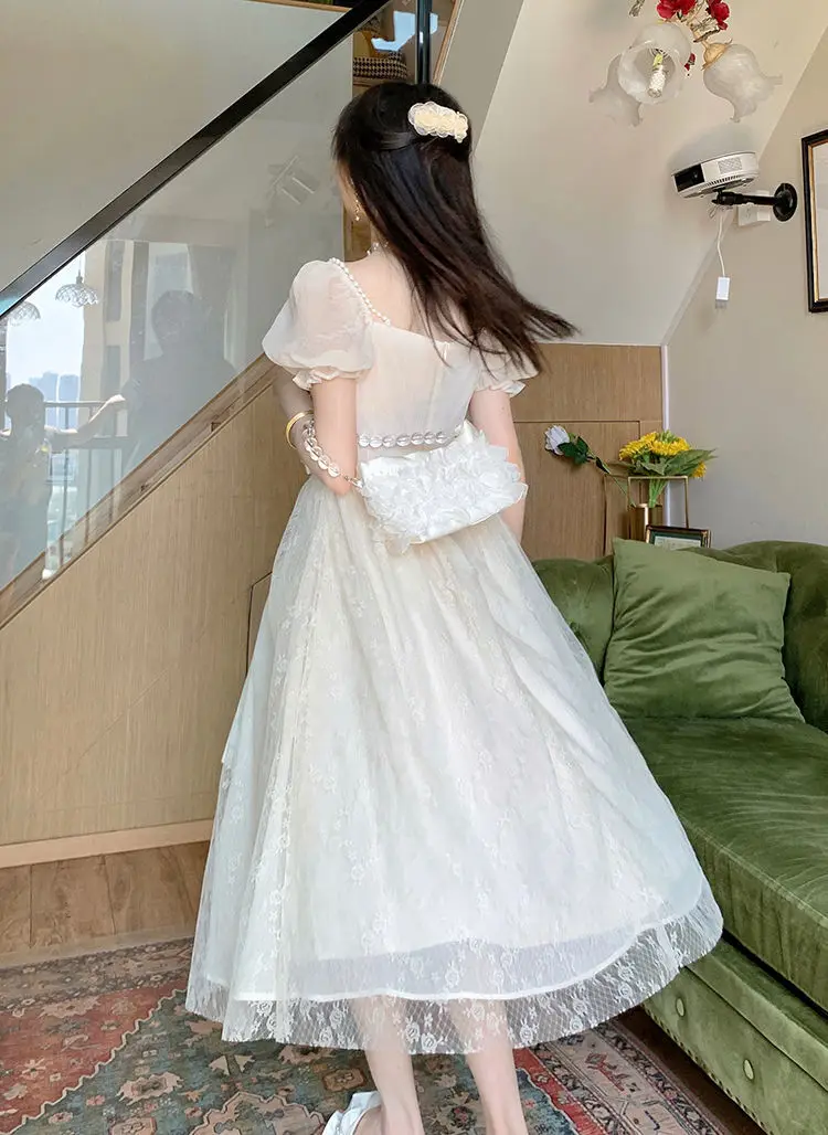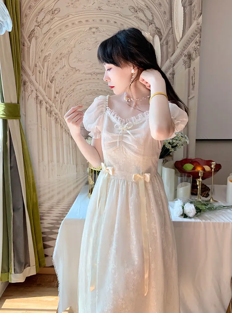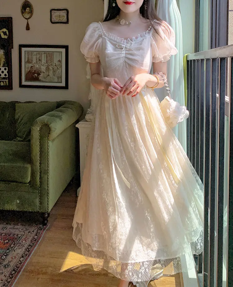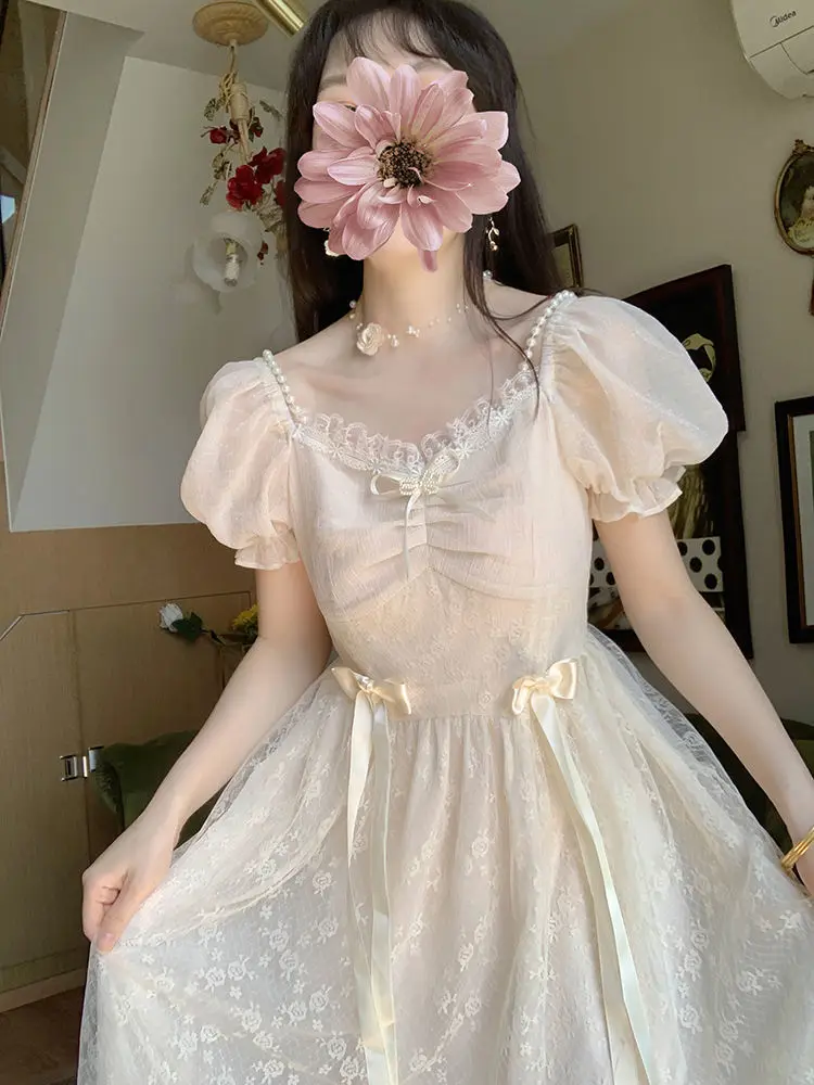 Elegant Princess Dress Women Vintage Lace-up Party Long Fairy Dresses for Women 2023 Summer Victorian Wedding Midi Dress Korean