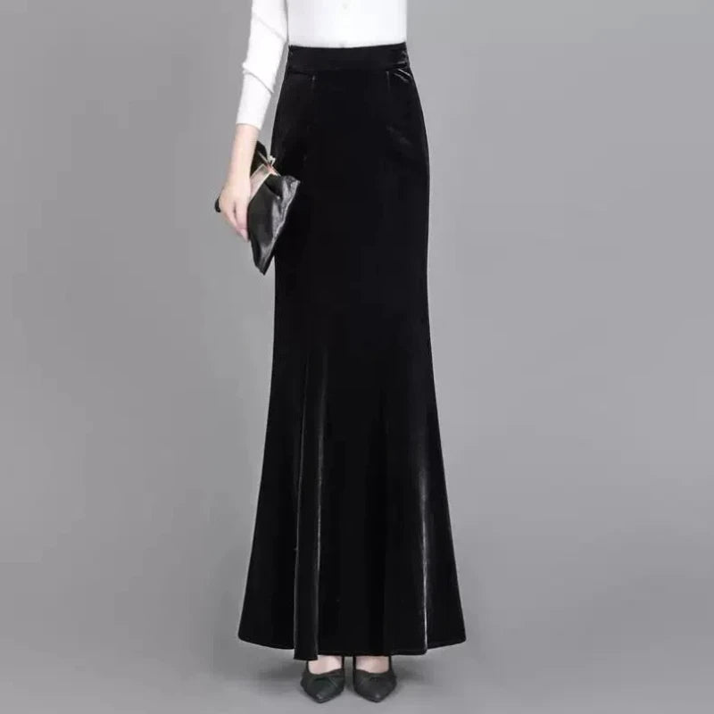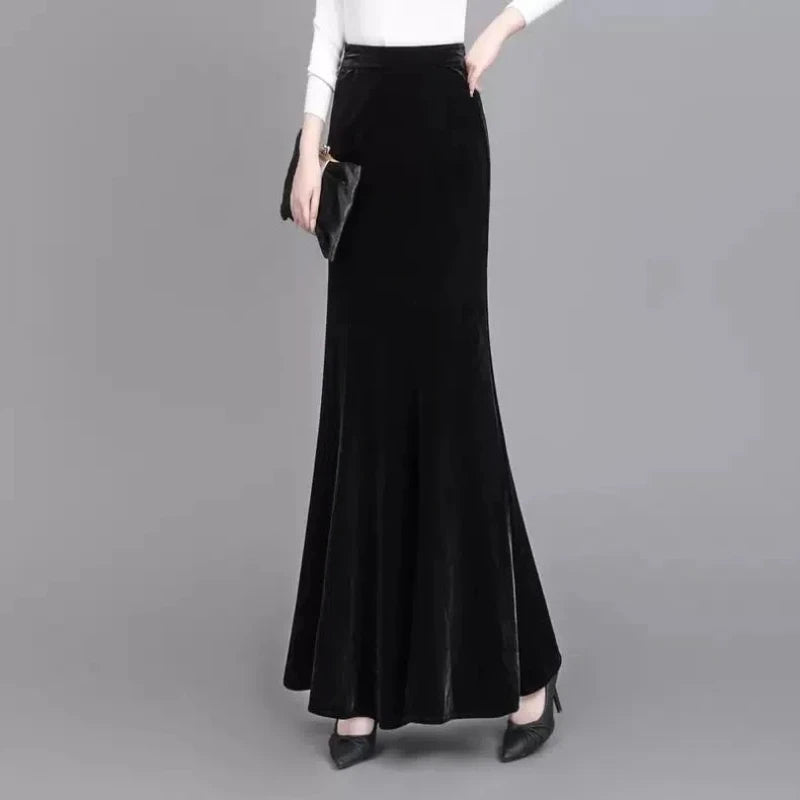 Extended Gold Velvet Skirt Fishtail Skirt Autumn and Winter Slim Tall Person with Hip-covered Long Skirt Female Temperament