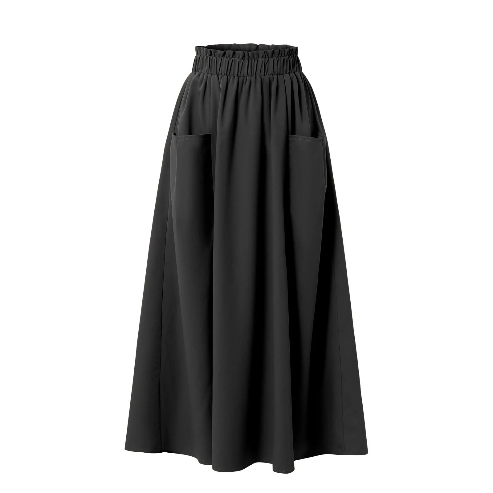 Women's High Waist Midi Skirt with Pockets - Elastic Waist A-Line Flowy Skirt for Casual and Office Wear