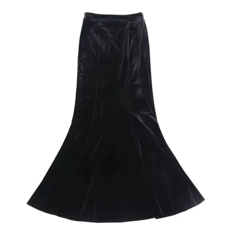 Extended Gold Velvet Skirt Fishtail Skirt Autumn and Winter Slim Tall Person with Hip-covered Long Skirt Female Temperament