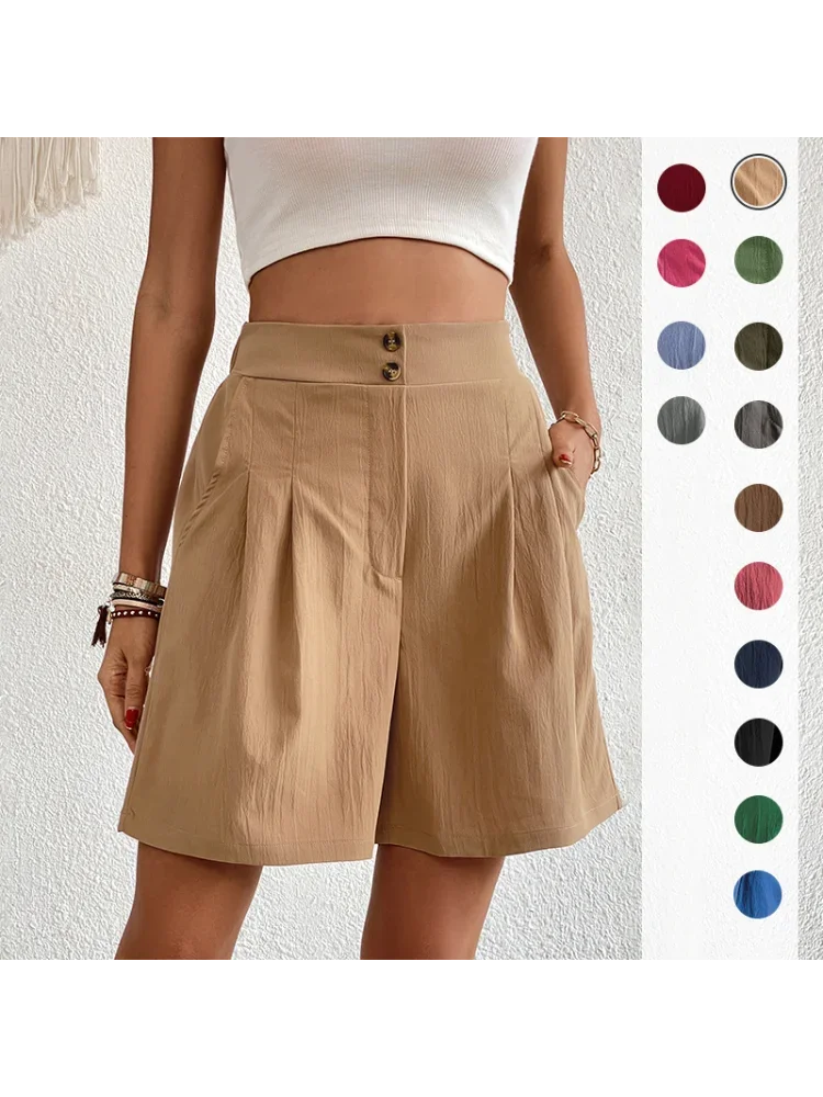Pinkycolor Fashion Summer Women Solid Color Double Button High Waisted Comfortable Straight Cylinder Loose Multicolor Shorts